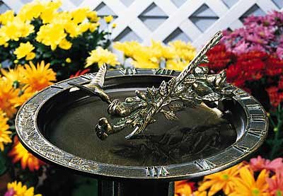 Hummingbird Bird Bath and Sundial Combo (Weathered Bronze) Features